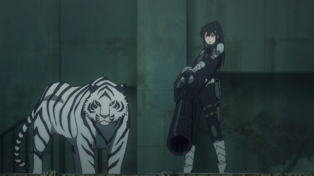 Uma das características mais distintivas de Mina Ashiro é o seu animal de estimação, Bakko, um grande tigre branco que é, na verdade, um Kaiju neutralizado e domesticado.[6] Bakko não é apenas um companheiro, mas um parceiro de combate vital. Serve como uma montada ágil e estável, permitindo que Mina se desloque rapidamente pelo campo de batalha e se posicione para obter o melhor ângulo de tiro.[11]